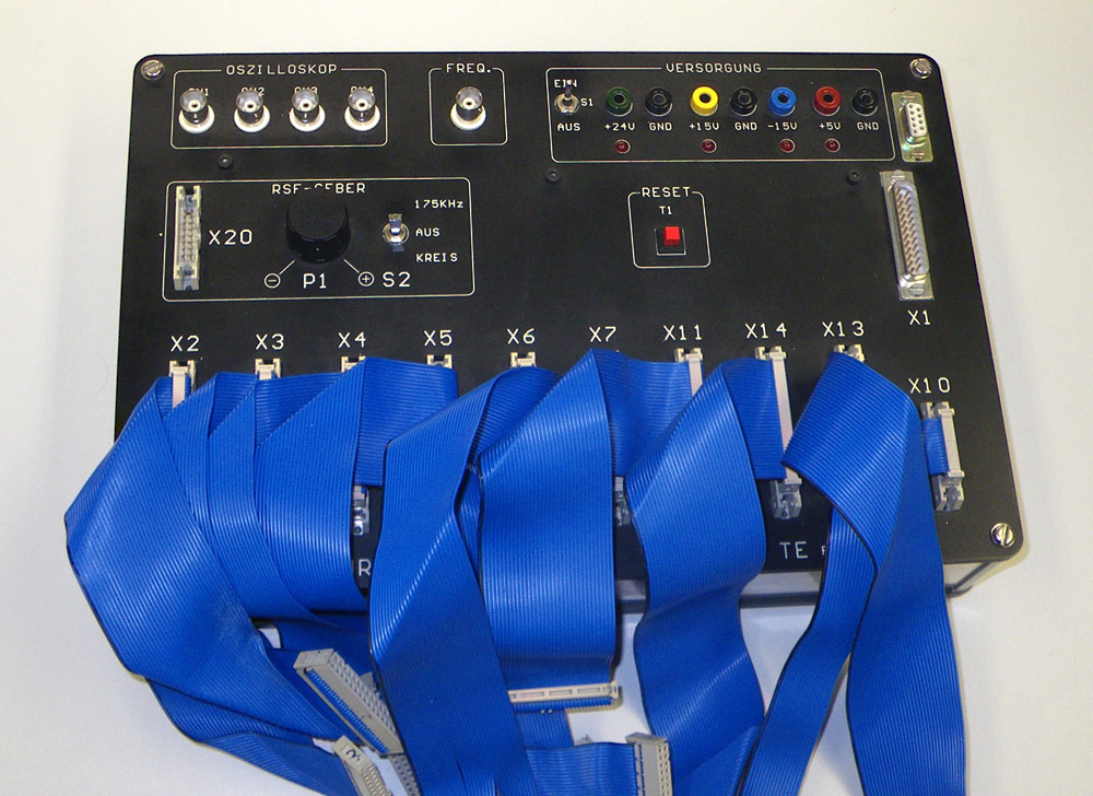 Wir entwerfen und bauen wichtige Prüfhilfsmittel wie spezielle Testadapter selbst. Bei Platinen mit Testsockeln für zu prüfende Halbleiter Bauelemente wird der Sockel selbst ebenfalls in die elektrische Prüfung mit einbezogen.